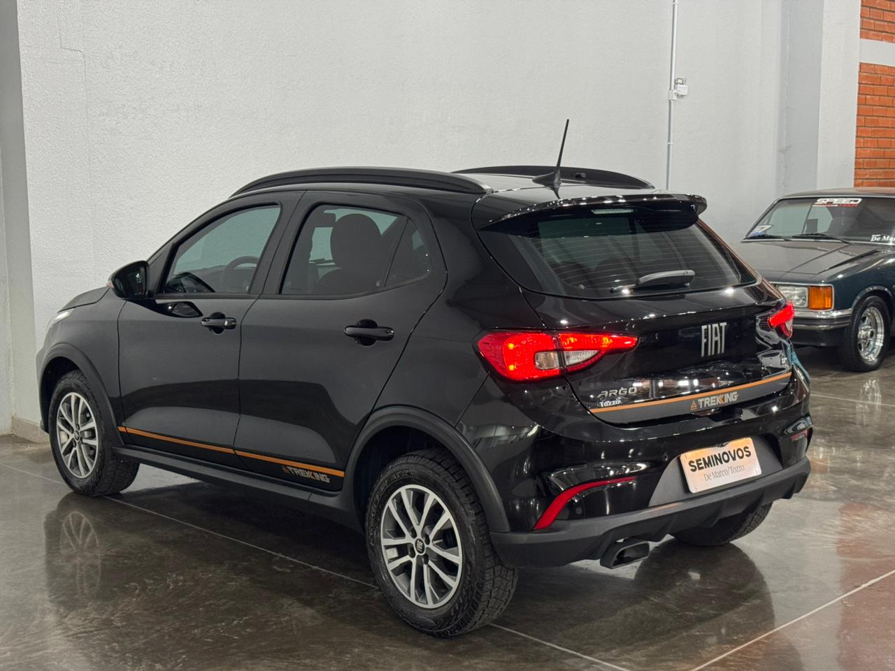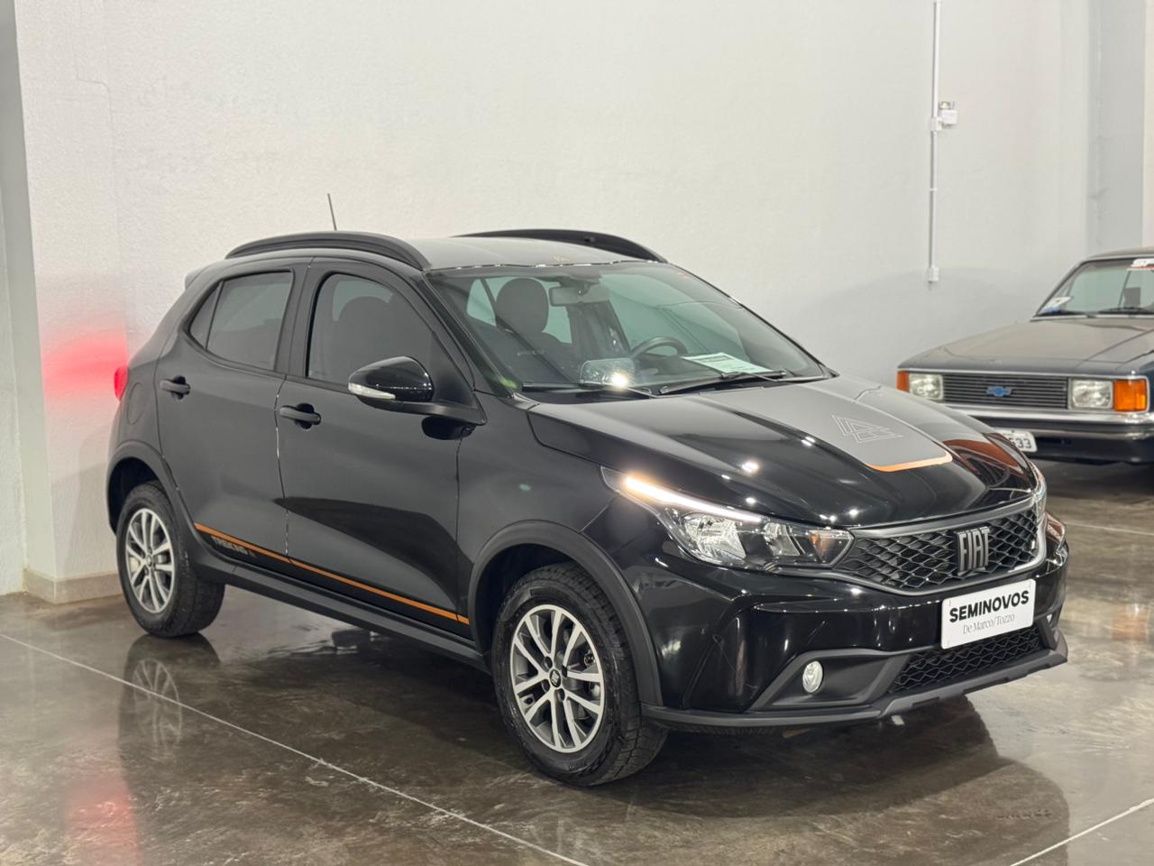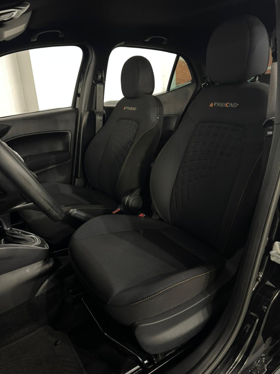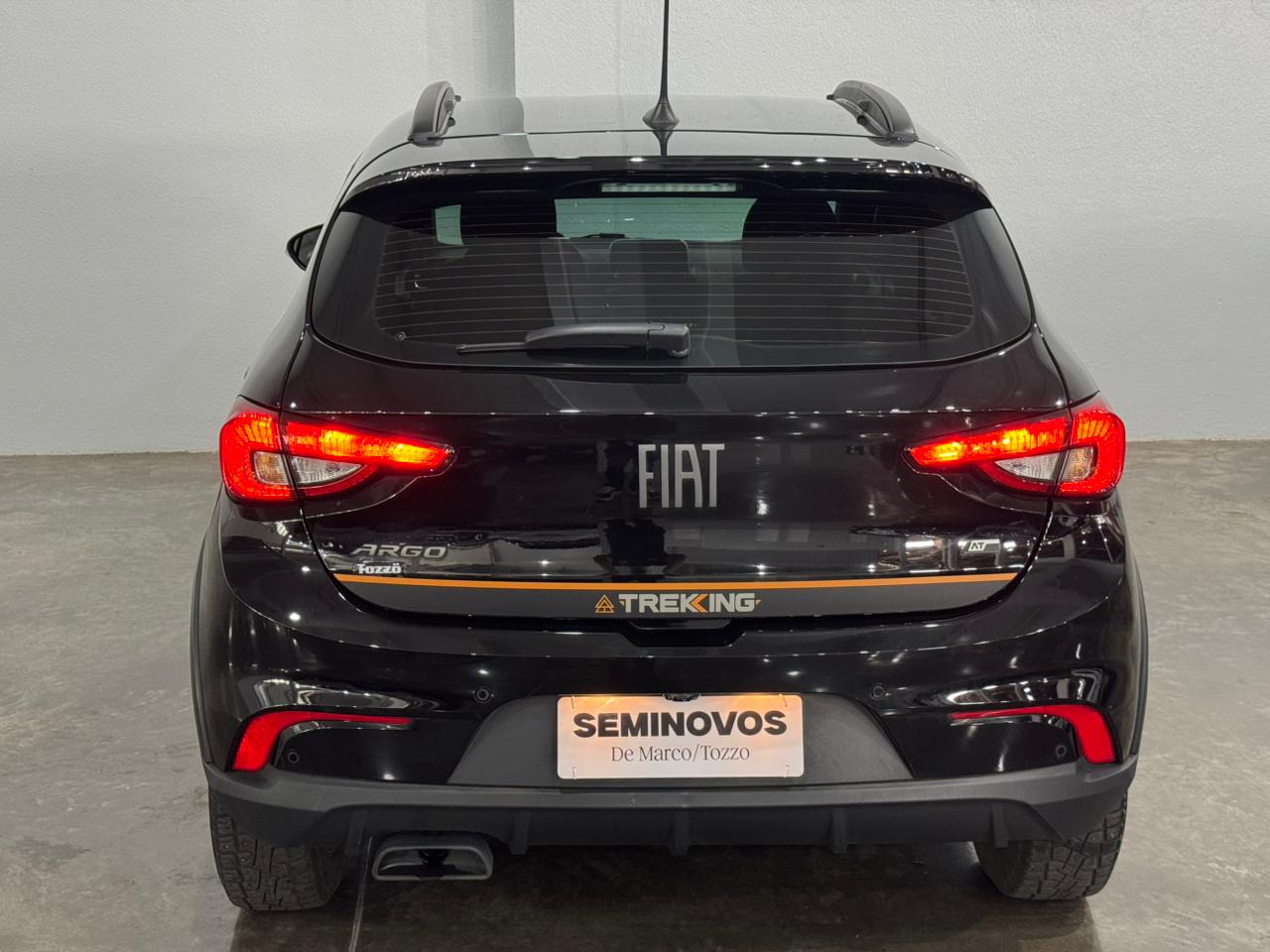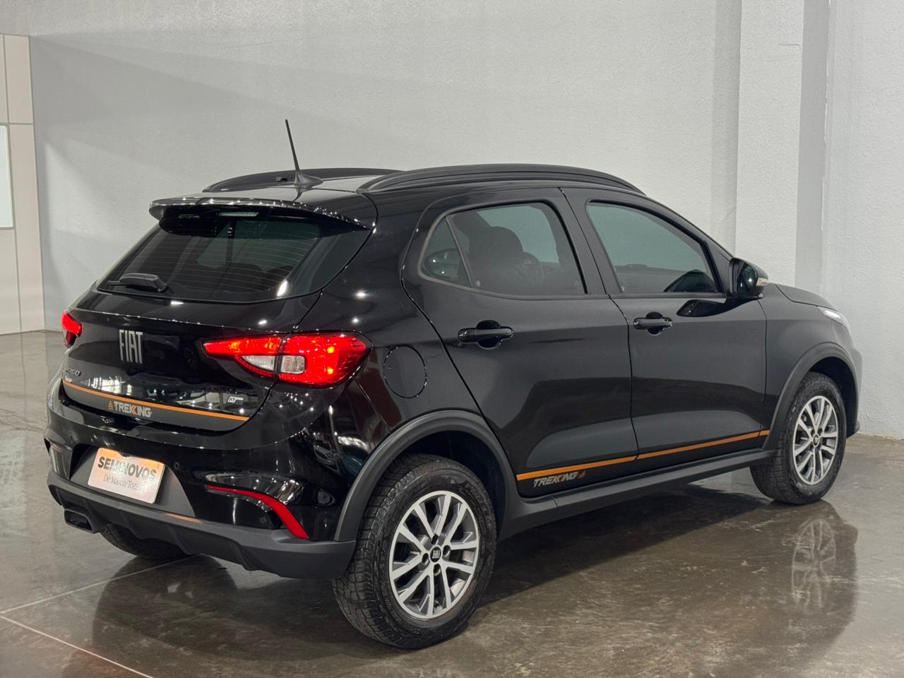 O Fiat Argo Trekking 2024/2025 é equipado com motor 1.3 Firefly Flex (até 107 cv e 13,7 kgfm), disponível com câmbio manual de 5 marchas ou automático CVT de 7 marchas simuladas. Destaca-se pela suspensão elevada (210 mm de altura do solo), pneus de uso misto, visual aventureiro e porta-malas de 300 litros. Ficha Técnica Resumida - Argo Trekking 1.3 (2024/2025):Motor: 1.3 Firefly Flex 4 cilindros em linha, 8 válvulas.Potência: 107 cv (E) / 98 cv (G) a 6.250 rpm.Torque: 13,7 kgfm (E) / 13,2 kgfm (G) a 4.000 rpm.Transmissão: Manual 5 marchas ou Automática CVT (7 marchas simuladas).Direção: Elétrica.Altura do Solo: 210 mm.Rodas/Pneus: Liga leve 15" com pneus 205/60 R15 (Uso misto).Porta-malas: 300 litros.Tanque: 47 a 48 litros.Principais Itens: Central Multimídia, câmera de ré, sensor de estacionamento, ar-condicionado, vidros/travas elétricas, rack de teto, adesivos da versão. Destaques da Versão Trekking:A versão focada em "aventura urbana" possui teto e retrovisores pretos (bicolor), molduras nas caixas de roda, suspensão reforçada e mais alta, além de pneus Scorpion. O interior conta com bancos exclusivos com costura laranja e o motor 1.3 oferece um bom equilíbrio entre desempenho e economia.