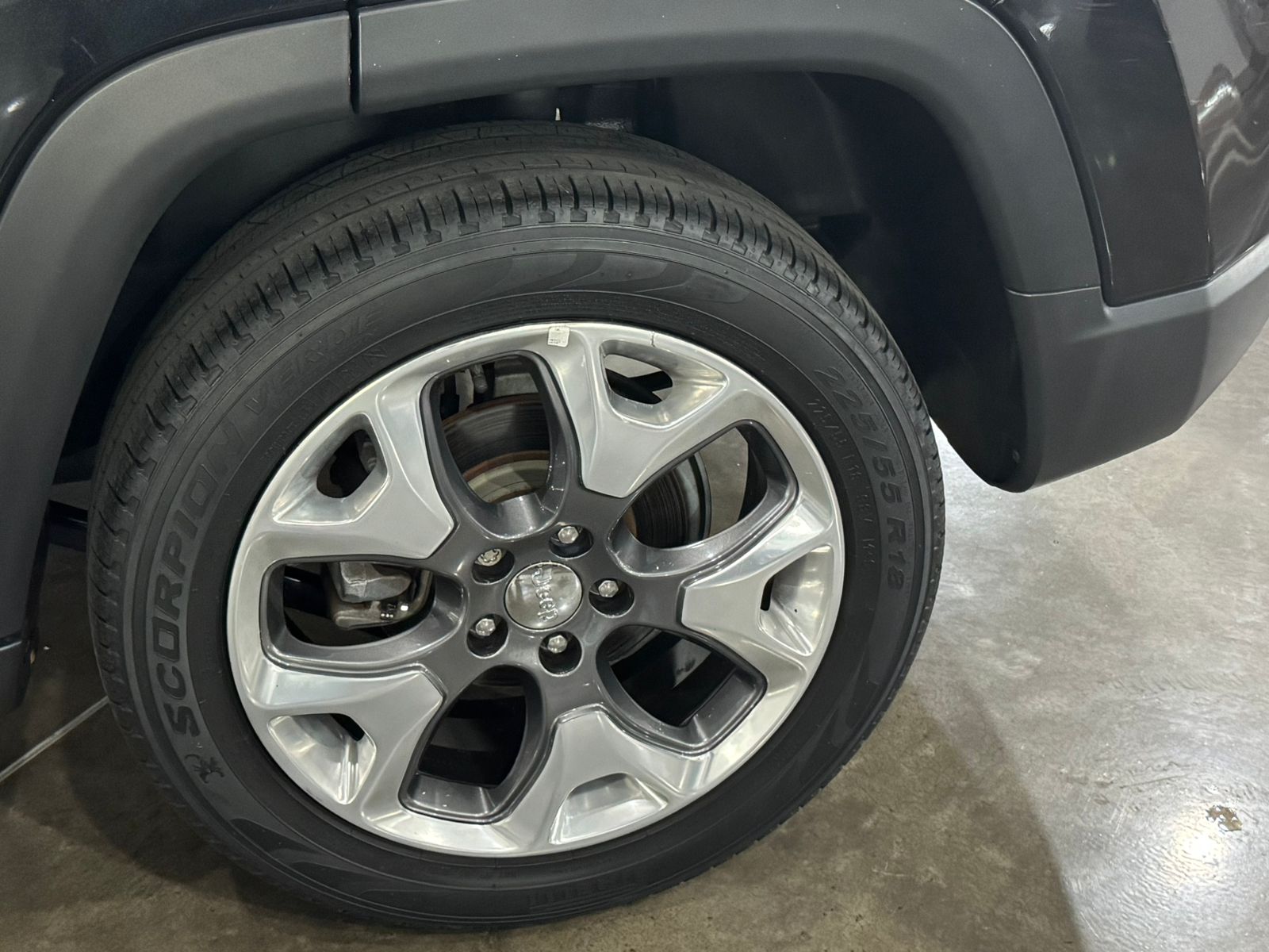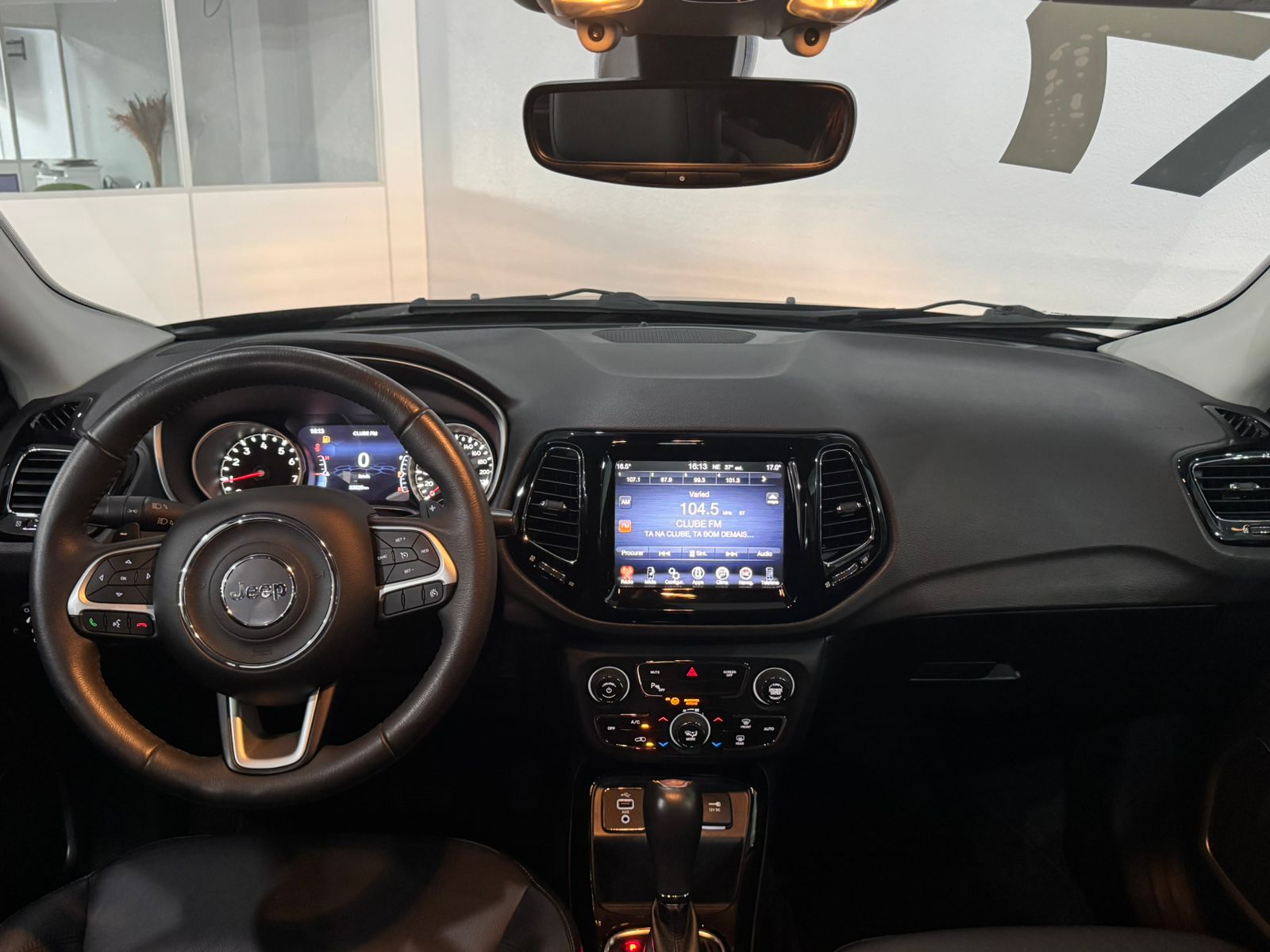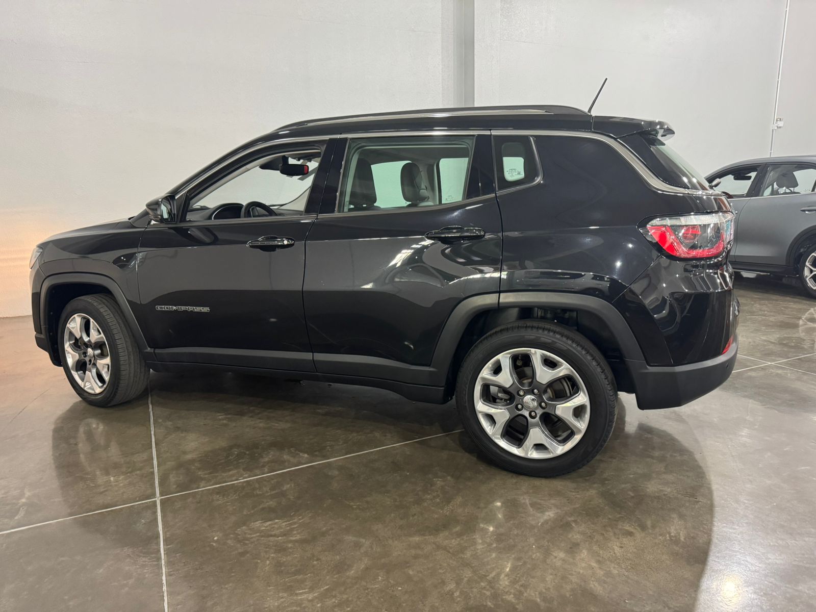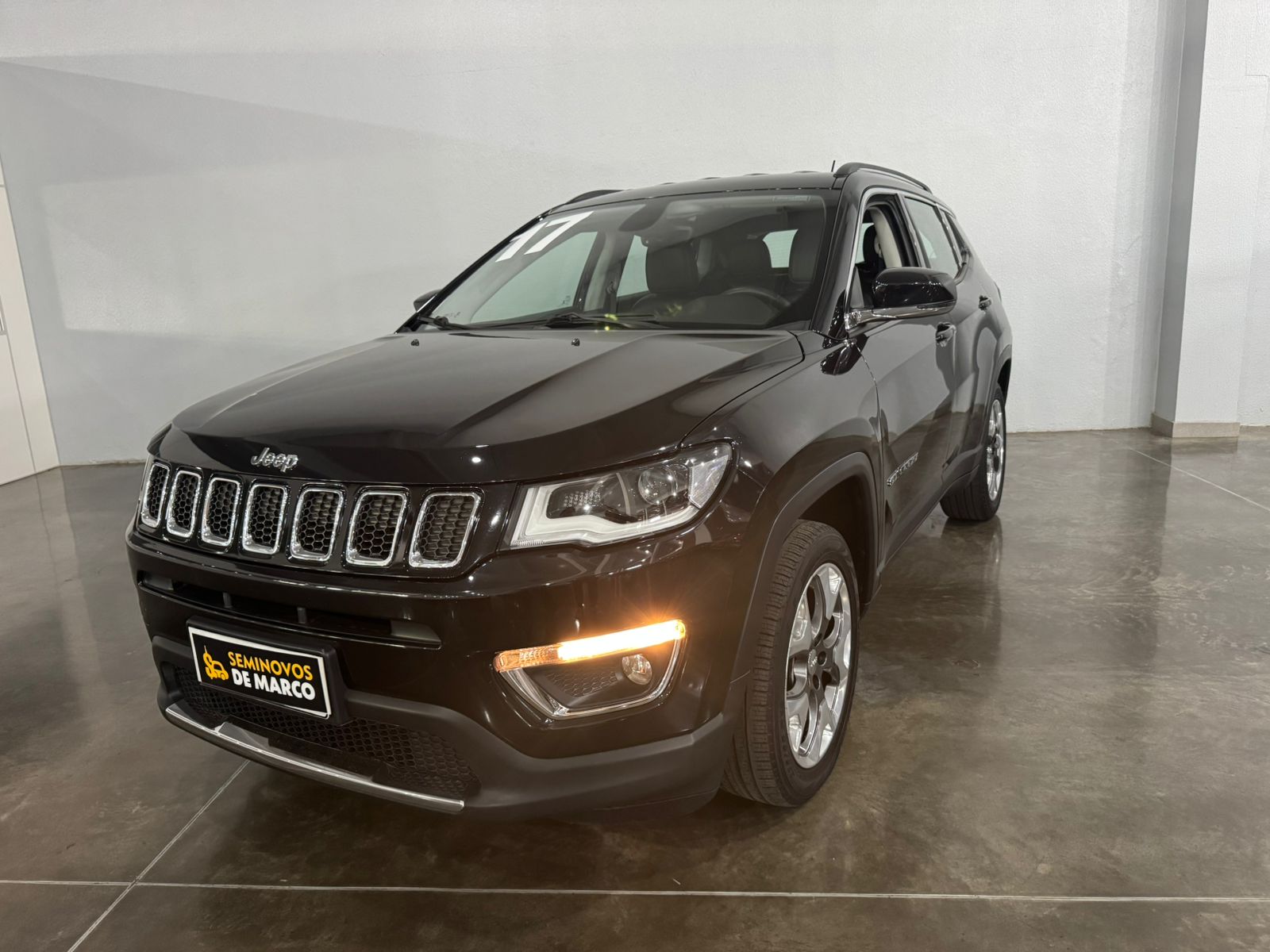 O Jeep Compass Limited Flex 2017 é um SUV médio equipado com motor 2.0 Tigershark Flex (166 cv etanol/159 cv gasolina) e câmbio automático de 6 marchas, com tração 4x2. Destaca-se pelo acabamento superior, 7 airbags, central multimídia, ar-condicionado de duas zonas, bancos em couro e rodas 18", oferecendo conforto e boa dirigibilidade urbana.Ficha Técnica Principal - Jeep Compass Limited 2.0 Flex 2017 Motor: 2.0 16V Tigershark Flex (4 cilindros em linha, todo em alumínio).Potência: 166 cv (E) / 159 cv (G) a 6.200 rpm.Torque: 20,5 kgfm (E) / 19,9 kgfm (G) a 4.000 rpm.Transmissão: Automática de 6 marchas com conversor de torque.Tração: Dianteira (4x2).Desempenho: Aceleração 0-100 km/h em 10,6 s (aprox.) e velocidade máxima de 192 km/h.Consumo (Cidade/Estrada): Aprox. 5,5/7,2 km/l (E) e 8,1/10,5 km/l (G).Dimensões: 4.416 mm (comprimento), 1.819 mm (largura), 1.639 mm (altura), 2.636 mm (entre-eixos).Porta-malas: 410 Litros.Tanque: 60 Litros.Peso: 1547 kg. Destaques de Equipamentos (Versão Limited):Segurança: 7 airbags (frontais, laterais, cortina e joelho motorista), controle de estabilidade (ESC), controle de tração, assistente de partida em rampa, sensor de ponto cego, sensores de estacionamento traseiros.Conforto/Tecnologia: Ar-condicionado automático digital Dual Zone, bancos revestidos em couro, chave presencial (keyless), partida por botão, central multimídia com tela de 5" (Bluetooth/USB), painel de instrumentos com tela digital configurável de 7 polegadas.Rodas/Pneus: Rodas de liga leve 18 polegadas com pneus 225/55 R18