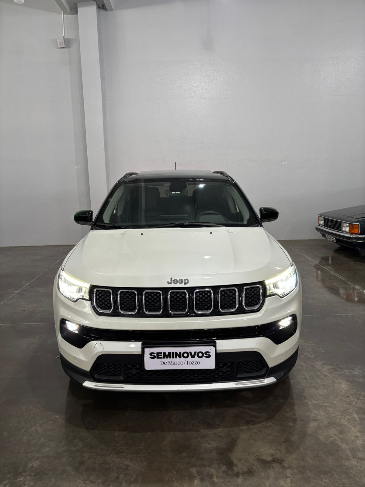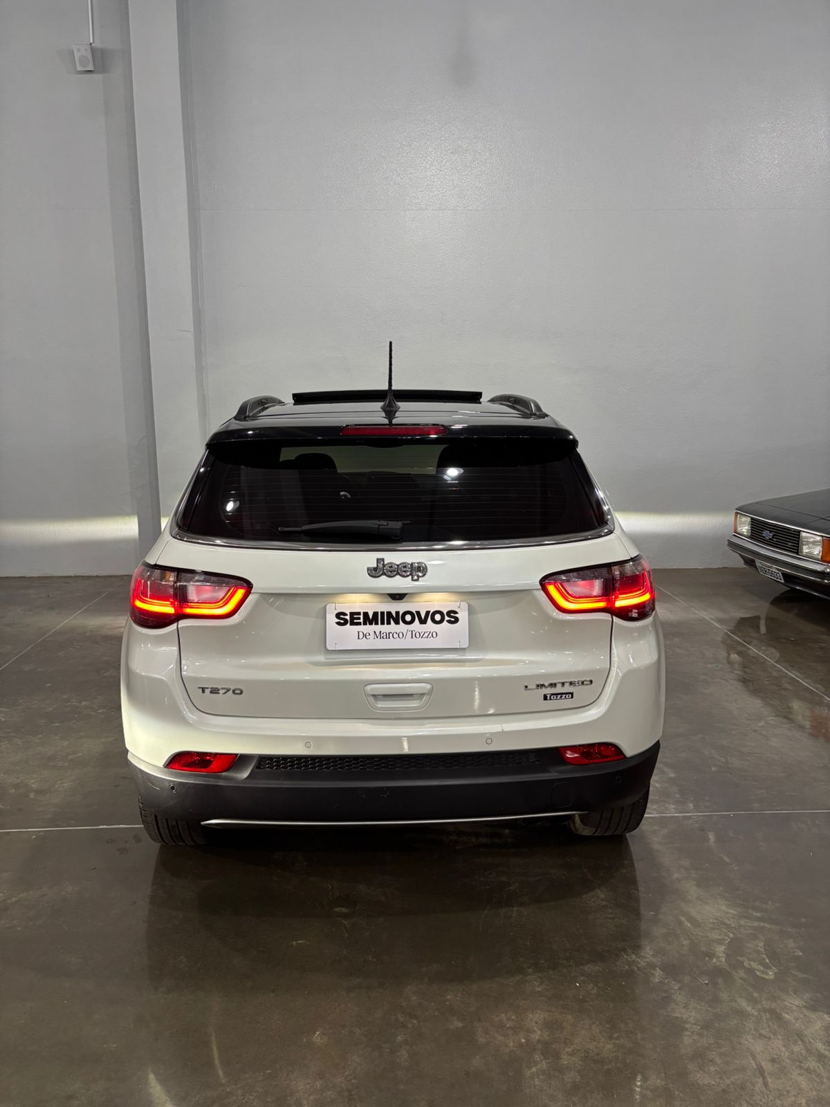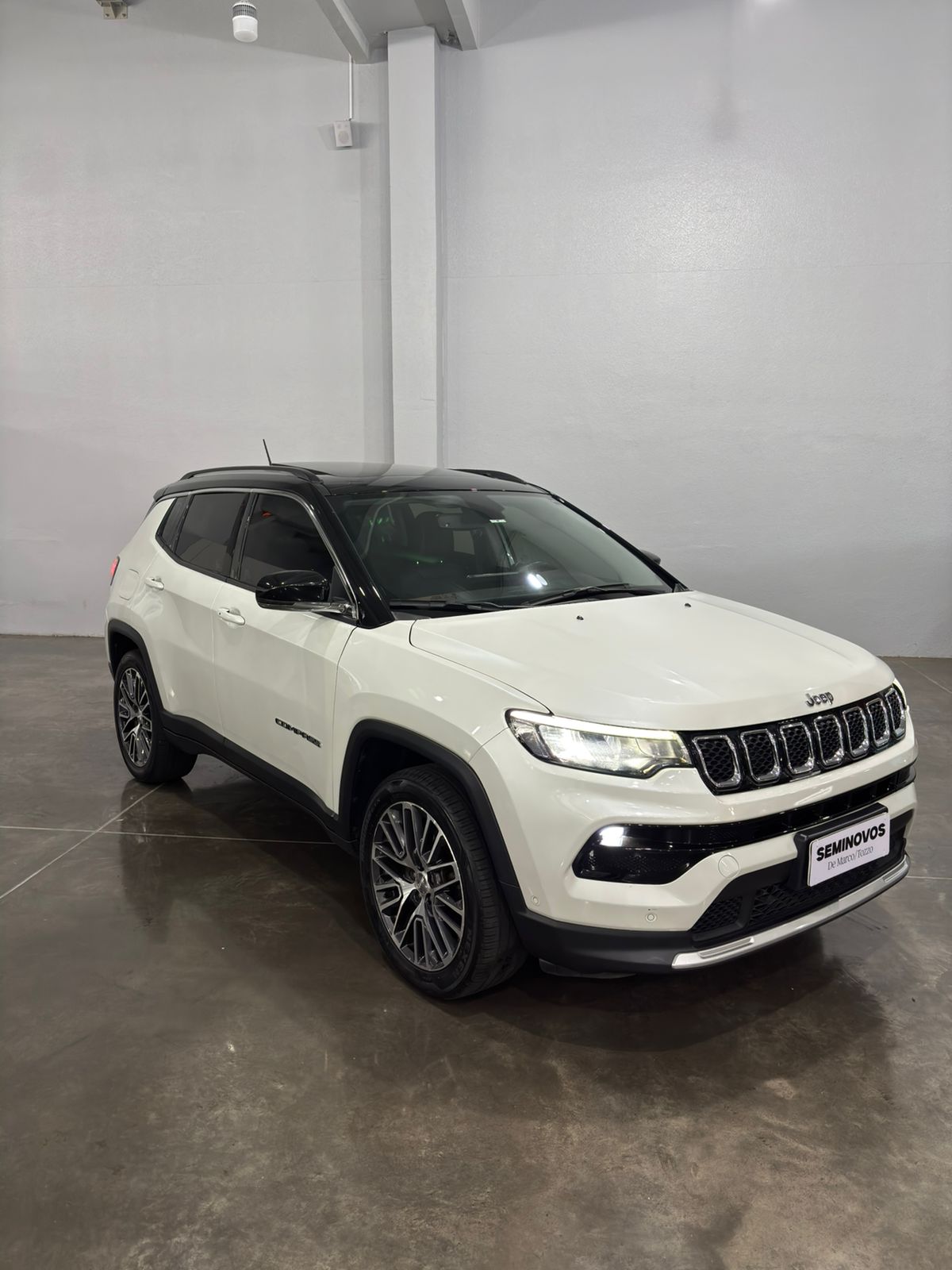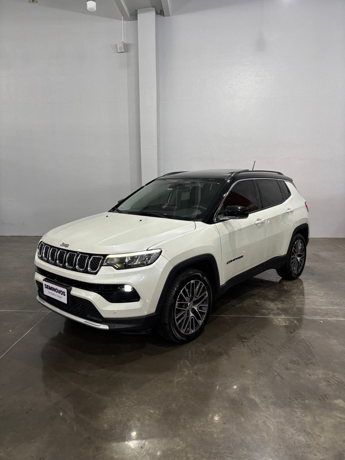 O Jeep Compass Limited T270 2022 é um SUV médio com motor 1.3 Turbo Flex de 185 cv (etanol) / 180 cv (gasolina) e 27,5 kgfm de torque, acoplado a um câmbio automático de 6 marchas. Destaca-se pelo alto nível de equipamentos, como tela de 10,1", painel digital, rodas aro 19" e 7 airbags, oferecendo consumo urbano médio de 7,2-9,3 km/L.Ficha Técnica Resumida: Jeep Compass Limited T270 2022 Motor: 1.3 L Turbo Flex (16V) - T270Potência: 185 cv (E) / 180 cv (G) a 5.750 rpmTorque: 27,5 kgfm (E/G) a 1.750 rpmCâmbio: Automático de 6 marchas (conversor de torque)Tração: Dianteira (4x2)0 a 100 km/h: 9,4s (E) / 9,8s (G)Velocidade Máxima: 206 km/h (E) / 203 km/h (G)Consumo (Inmetro):Cidade: 7,2 km/L (E) / 10,1 km/L (G)Estrada: 8,3 km/L (E) / 12,0 km/L (G)Porta-malas: 410 LitrosTanque: 55 LitrosDimensões: Comprimento 4,41 m | Entre-eixos 2,63 m | Altura 1,64 mSuspensão: Independente MacPherson nas quatro rodas Principais Equipamentos da Versão Limited:Tecnologia: Central multimídia de 10,1" com Android Auto/Apple CarPlay, Painel de Instrumentos de 10,25", Chave Presencial e Partida Start/Stop.Conforto e Acabamento: Bancos em couro, ar-condicionado digital Dual Zone, banco do motorista com ajuste elétrico.Segurança: 7 Airbags, monitoramento de ponto cego, sensores de estacionamento (dianteiro/traseiro), câmera de ré, controles de tração e estabilidade.Rodas: Liga leve de 19 polegadas