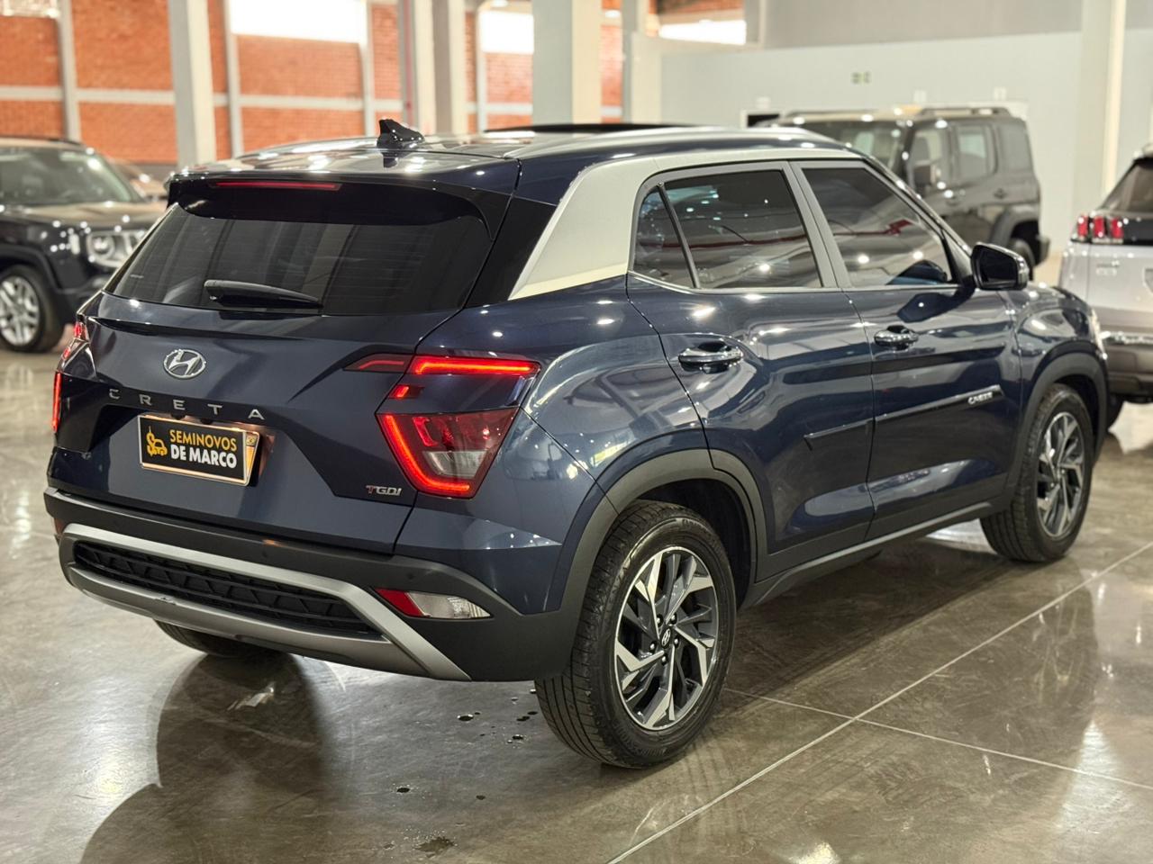 Hyundai Creta Platinum 1.0 Turbo Automático - Impecável!• Versão topo de linha com teto solar e teto panorâmico• Câmera 360 graus para segurança total• Manual do proprietário e chave reserva inclusos• Todas as revisões realizadas na concessionária Hyundai, comprovando cuidado e procedência• Carro em estado impecável, segundo dono• Excelente opção para quem busca conforto, tecnologia e segurançaEntre em contato para mais detalhes e agendar uma visita.