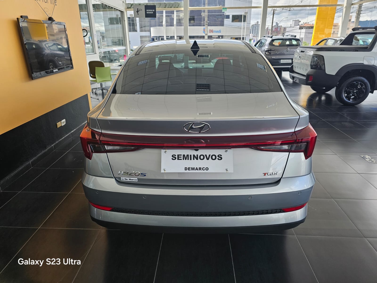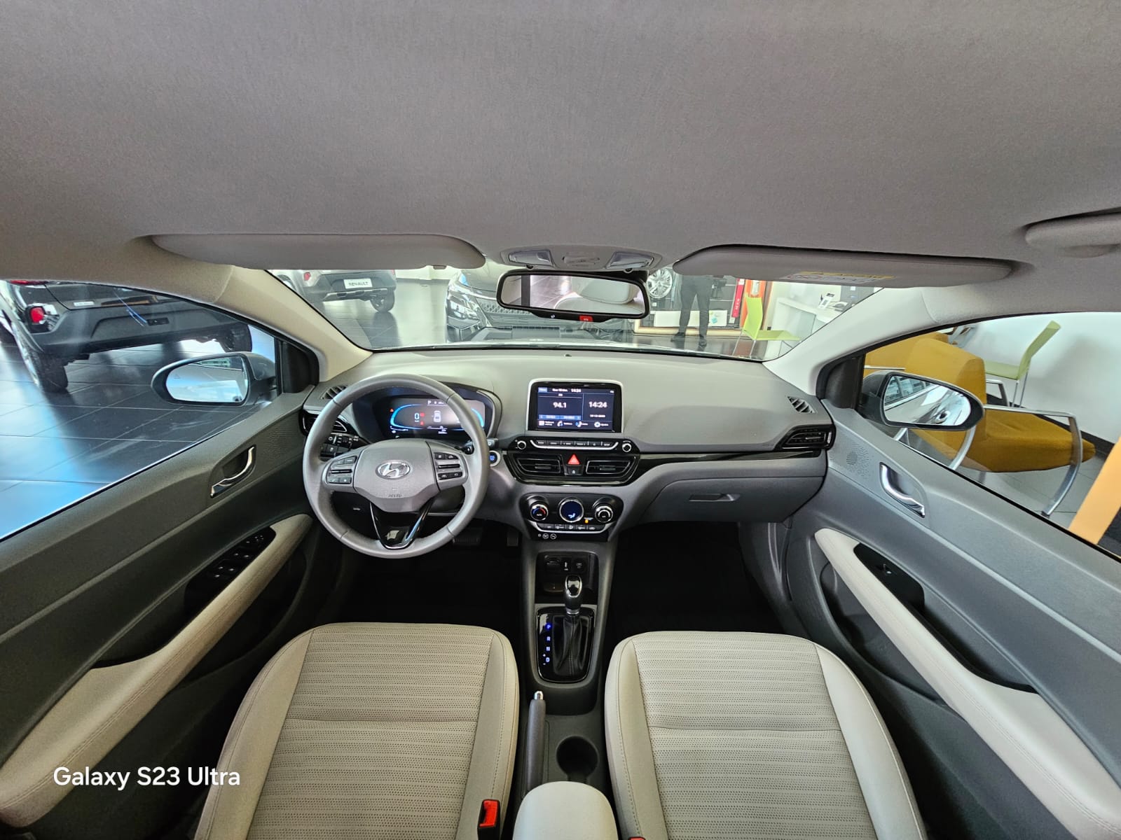 Equipamentos de série Hyundai HB20S Platinum Plus 1.0 Turbo AT 2024Conforto e conveniênciaAcionamento remoto do motor, Ajuste do volante em altura, Ajuste do volante em profundidade, Ajuste elétrico dos retrovisores, Alças de segurança no teto, Apoio de braço para o motorista, Ar quente, Ar-condicionado, Ar-condicionado automático, Assistente de centralização em faixa, Banco do motorista com ajuste de altura, Banco traseiro bipartido, Banco traseiro rebatível, Bancos revestidos em couro, Câmbio automático, Chave presencial, Cintos de segurança com ajuste de altura, Comando interno da tampa do tanque, Controle automático de velocidade, Controle elétrico dos vidros dianteiros, Controle elétrico dos vidros traseiros, Destravamento remoto do porta-malas, Direção assistida, Faróis com acendimento automático, Limitador de velocidade, Luz de teto traseira, Luz no porta-luvas, Luz no porta-malas, Retrovisores rebativeis eletricamente, Rodas de liga leve, Sistema start-stop, Troca de marchas no volante, Zonas de ar-condicionado: 1Entretenimento e informaçãoCarregador de celular por indução, Comandos ao veículo via aplicativo, Computador de bordo, Conexão Bluetooth, Conexão USB, Conta-giros, Espelhamento da tela do celular, Indicador de temperatura externa, Informações do veículo via aplicativo, Rádio, Termômetro do líquido de arrefecimento, Volante multifuncionalSegurança ativa e passivaAirbags de cortina, Airbags frontais, Airbags laterais, Alarme antifurto perimétrico, Alarme antifurto volumétrico, Alerta de colisão frontal, Alerta de mudança de faixa, Alerta de ponto cego, Alerta de tráfego cruzado traseiro, Assistência na recuperação veicular, Assistente de desembarque, Assistente de farol alto, Assistente de partida em rampa, Assistente de permanência em faixa, Câmera traseira para manobras, Chamada de assistência de emergência, Cintos de 3 pontos para todos ocupantes, Controle de estabilidade, Controle de tração, Desembaçador do vidro traseiro, Encosto de cabeça para todos ocupantes, Faróis com refletores duplos, Faróis de neblina, Freios ABS, Frenagem automática de emergência, Frenagem automática em manobras, Indicador de fadiga, ISOFIX para fixação de cadeira infantil, Luz de condução diurna, Monitoramento de pressão dos pneus, Repetidores laterais das luzes de direção, Sensores de estacionamento traseiro, Travamento central das portas